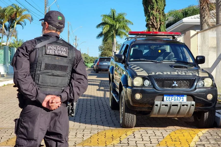 Homens da Polícia Federal na operação que apreendeu celular de Bolsonaro em maio